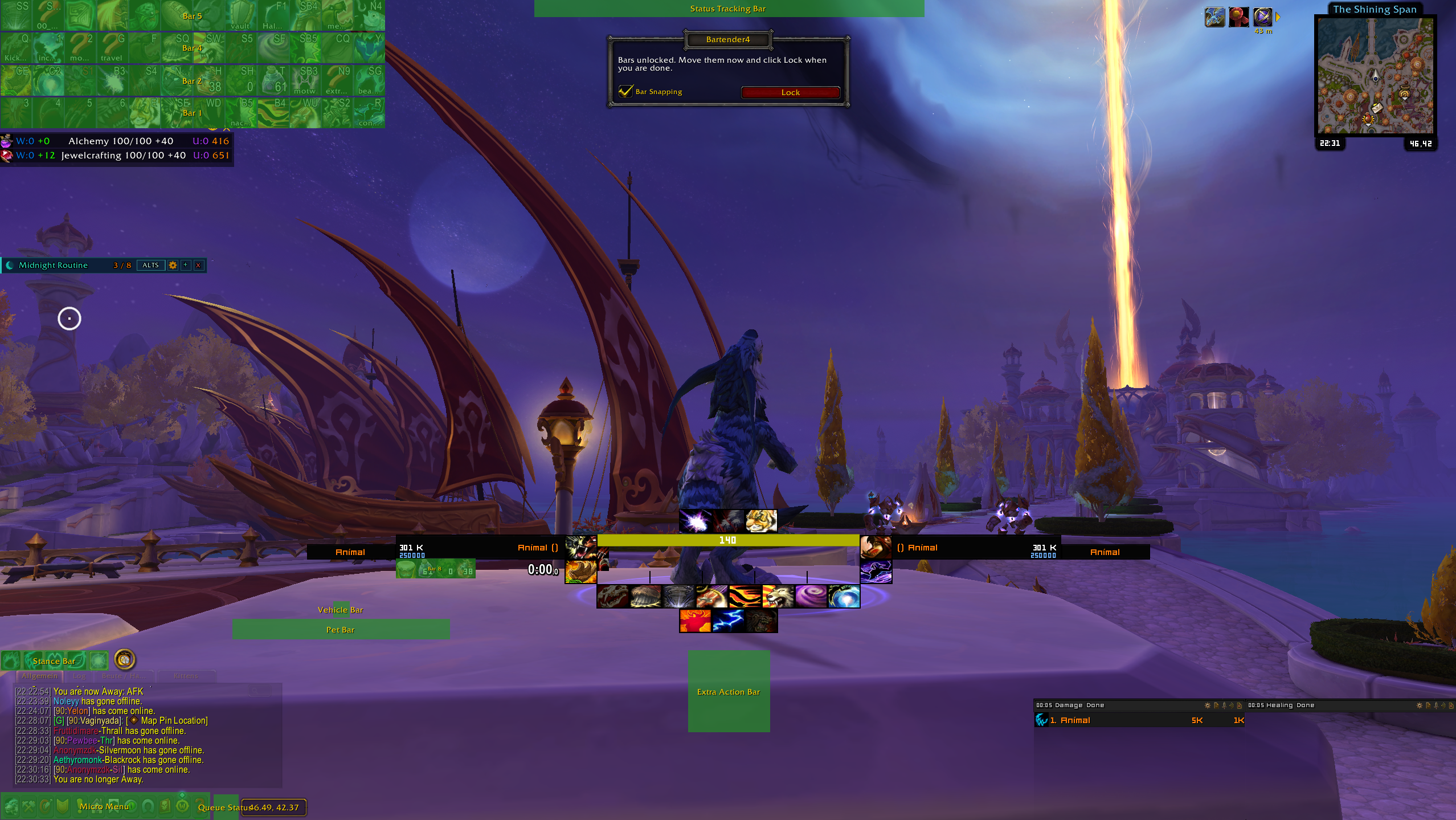Im Schwerpunkt nutze ich Bartender um die Actionbars auszublenden, da diese in vielen Fällen