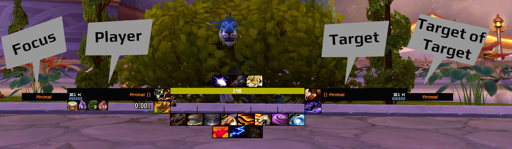 Player, Target, Target of Target, Focus Target, Bosse usw... an und Überschreibt die Standard Frames von Blizzard.